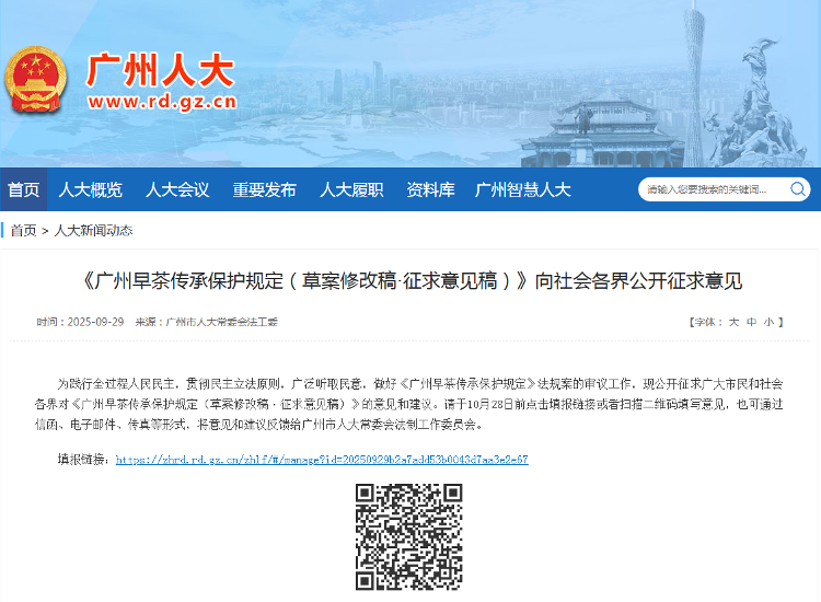 海报新闻首席记者李子娇报道,近日,广州市人大常委会官网发布《广州市早茶传承保护条例(修订草案·征求意见稿)》(以下简称《征求意见稿》),公开统一意见和建议,引发关注。早茶历史悠久,承载着岭南饮食文化的记忆,也是广州饮食文化的一张名片。然而,近年来,广州早茶经常因茶费、预制菜品等问题引发争议。 《征求意见稿》是指上述争议的内容。例如,要求经营者在菜单等显着位置明确标明早茶采用传统方式和非传统方式制作。两者可以定价不同的价格。如果收取茶座费,有各种茶点应提供产品供客户选择。此外,在人才培养方面,《征求意见稿》还提出建立健全广州早茶大师相关专业技能评价体系,开展广州早茶大师星级表彰活动,培育建设广州早茶大师工作室。这也意味着广州通过立法保护,对广州早茶文化这一非物质文化遗产进行传承和保护,让这座城市的味道“有法可依、有标准可依”。资料来源:广州市人大常委会网站 “茶费”不是“禁”,而是“采鲜”“绿叶满盘,香茶刚过火。一位晚清诗人曾用他的精彩之笔,记录了清代广州人民热情的生活。《草案》中提到的“广州早茶”。“评”是指在广州地区起源、发展、流行的一种具有独特地域特色的饮食消费方式,符合非物质文化遗产的特点,以饮茶点心为主要形式,融合了岭南饮食文化、社会习俗和传统习俗。对于广州早茶来说,茶不是重点,但不是可有可无的。一壶好茶,一篮精致。 小吃可以互补。但有消费者反映,近年来,一些餐馆提供的小茶包,外包装上无非是茶叶的名称,质量存疑。更重要的是,茶桌费的计费标准不一致。据了解,目前广州不少茶馆根据茶叶种类或不同档次、地点收取茶桌费,从几元到更多不等。 每人十元以上。一般来说,t红茶、普洱、铁观音、开水的茶费低于香茶等其他品类。室内包间、包间、室外包间/大厅的茶水费由高到低依次递减。针对“茶费”话题,《征求意见稿》建议,广州早茶经营者应当以复杂、清晰的方式对所有收费项目进行明确定价,明确标明定价方式,并保证店内菜单、价签、自主点餐应用等显示的价格内容一致。如果广州早茶经营者收取茶座费,则应提供红茶、绿茶、普洱茶、菊花茶等供买家选择,并提供相关的茶饮服务。广州著名美食评论家劳一波表示:“该法的主要内容不是‘禁止收取’,而是‘明确收取’——不仅要明码标价,还要让服务成本与收费对等,避免‘强行收取’。”他补充说,这一规定既回应了消费者“收费透明”的诉求,也为经营者保留了合理的利润空间。“过高的茶费会让消费者用脚投票”,标准化可以让茶费回归“服务费”的本质。”来源:广州市人大常委会网站“预制菜”可 出售,但必须“明确说明”。当食材新鲜、手工包裹、现点现蒸、视觉抢眼时,一顿难忘的早茶才能成为一顿难忘的大餐。它已经成为广州食客心中的一个根深蒂固的概念。但在现成菜肴兴起的今天,广州早茶还需要坚守传统吗? iimedia数据显示,2025年1月至6月,规模 广东凉菜产业将突破960亿元 占全国13.7% 同比增速te 超过 28%;调理菜企业约8000家,占全国总数的11.9%。目前,广东省已形成15个省级调理菜产业园。随着省内熟菜产业的快速发展,业内人士透露,近年来,广东越来越多的早茶店涉足熟菜“供应链”。在广州,一些迎合本地顾客的传统茶馆维持着手写点单、推车送餐的模式,茶点大多是多多点单。品牌经营的连锁店将对食品和纪念品做出各种改变。区内有众多高端商务区和写字楼。考虑到送餐效率、空间限制等因素,他们也会接受食品半成品加工等模式。业内人士指出,“如今,不少早茶店已经新鲜制作的小吃是他们的招牌特色。一些预制与现制口味差异较大的小吃是现做的,而其他蒸制小吃都是预制的,现制与现制的“捆绑”销售。”针对社会广泛关注的“预制菜”争议,《征求意见稿》指出,早茶应明确其运作方式,保障消费者的知情权和选择权。具体来说:经营者应向消费者明确说明传统早茶的做法。 早茶的制作方式和菜单上的非传统的早茶制作方式或者其他不好的方式。传统方式制作的早茶从准备到饮用一般不超过二十四小时。以传统和非传统方式准备的早餐食品可适用不同的价格。记者了解到,目前有茶馆试点正在进行:厨房开放,让消费者保证新鲜的烹饪过程,菜单上标注“现做干蒸(36元/笼)”和“预制干蒸(20元/笼)”,不仅消除了信任顾虑,还让消费者可以公开透明地选择多种产品。 “明言”+“传承”激发早茶新活力。除了上述两条“明目张胆的说法”外,《征求意见稿》还暗示了两条“法力”。一是早茶文化的传承。 《征求意见稿》要求,文化、广电、旅游主管部门要挖掘发布与广州早茶有关的传统习俗、民俗文化及相关历史遗存,建立资源库并开展数字化保护,将广州早茶文化作为旅游文化推广的重要内容。二是早茶技艺的传承。 《征求意见稿》要求人力资源行政管理部门组织开展广州市早茶大师星级认定活动,与广州早茶大师工作室培育建设相关的国家职业技能等级认证进行沟通。具体办法由市人力资源社会保障行政部门另行制定。事实上,从去年开始,广州早茶市场就呈现出连锁品牌的蓬勃发展。一些主打新鲜茶点、遵循古法的老早茶品牌开始在市场上受到欢迎。近一两年,广州几个老牌早茶品牌沉寂多年后“
